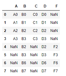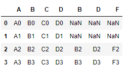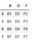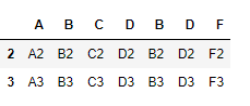 df4를 살펴보면 행 인덱스 2,3이 열 인덱스 B와 F가 겹치는 것을 보실 수 있습니다.