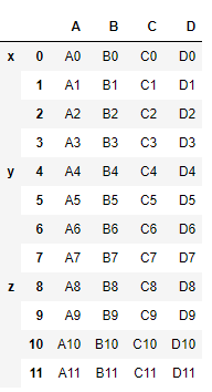 result = pd.concat([df1, df2, df3], keys=['x', 'y', 'z'])
