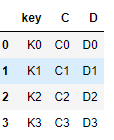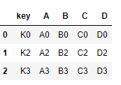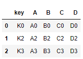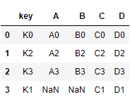 left = pd.DataFrame({'key': ['K0', 'K4', 'K2', 'K3'],