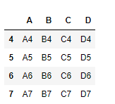 df2 = pd.DataFrame({'A': ['A4', 'A5', 'A6', 'A7'],