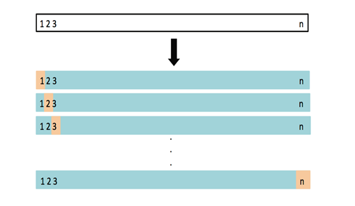 사이즈가 n인 data set으로 나눕니다. training data set (blue) 사이즈는 n-1이고 validation data set (beige) 사이즈는 1입니다.