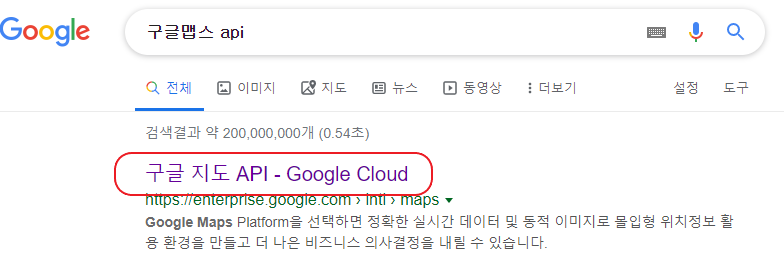 구글에 구글 맵스 api를 검색하신 후 구글 지도 API - Google Cloud 사이트를 들어가 줍니다.