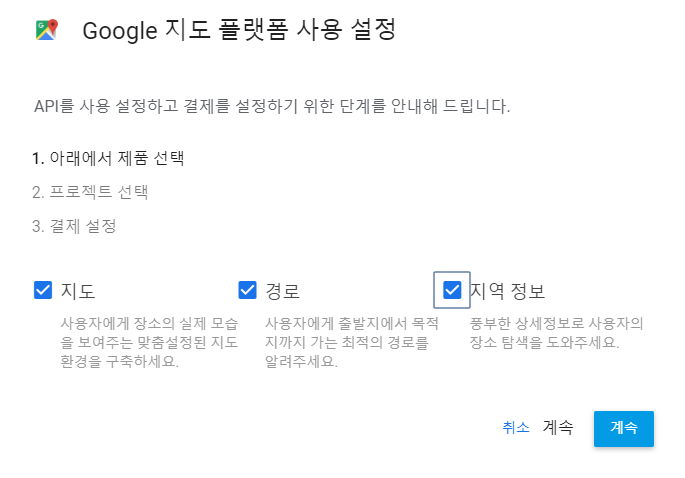 무료였던 구글 맵스가 유료로 전환되었기 때문에 결제 계정을 만들어야 하지만 걱정하지 마시고 진행합니다.
