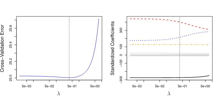 좋은 $\lambda$ 값을 고르는 것이 매우 중요합니다. cross-validation이 이를 위해 사용됩니다.