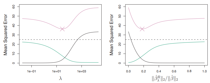 $X_{j}\hat{\beta_{j, \lambda}^{R}}$는 $\lambda$의 값은 심지어 other predictors의 scaling에 의존하기도 합니다.